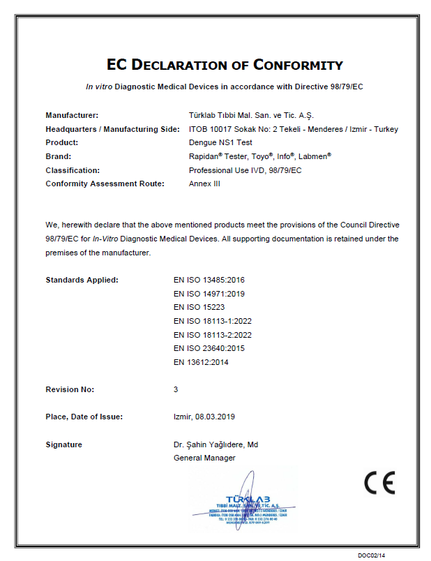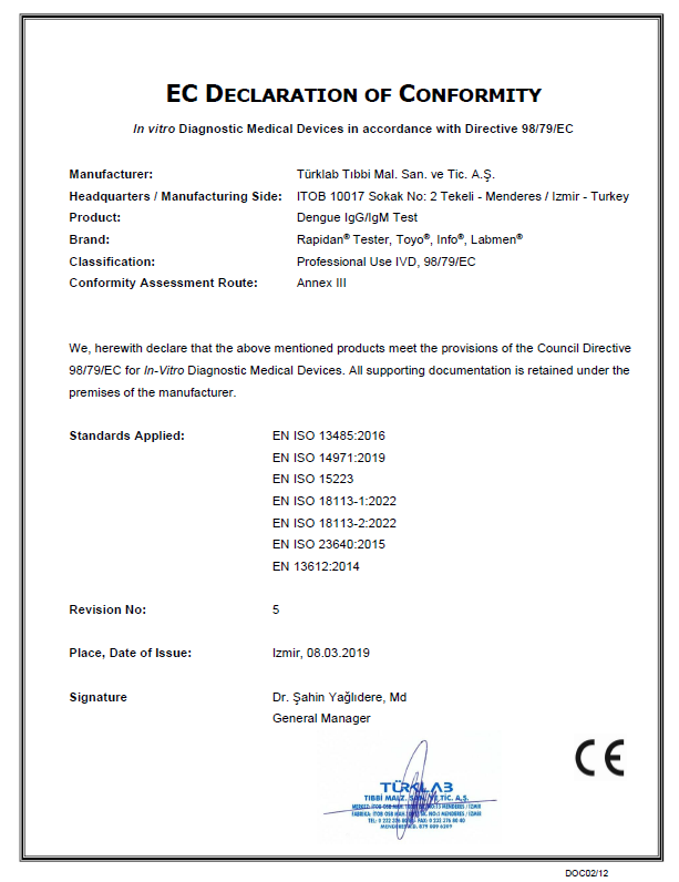 Our products are fully in compliance with the EU directive for medical devices. According to the product classification, the products have appropriate certificates such as, Full Quality Certificate, Design Examination Certificate, and Declaration of Conformity.